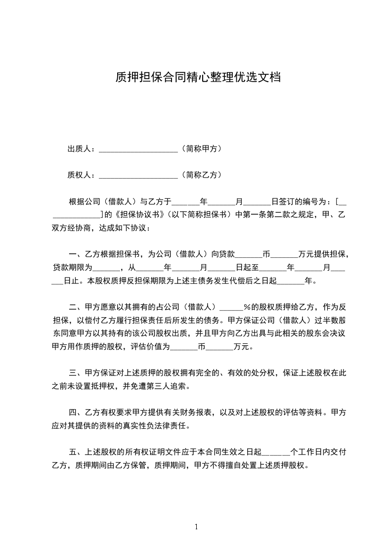为确保甲、乙双方签订的_________年_________字第_________号合同的履行,甲方以在_________投资的股权作质押,经双方协商一致,就合同条款作如下约定: