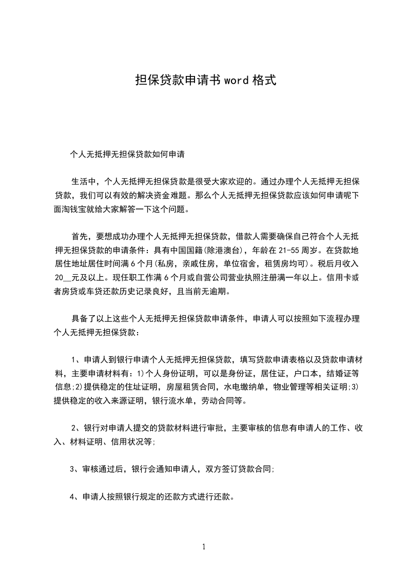 个人无抵押无担保贷款如何申请