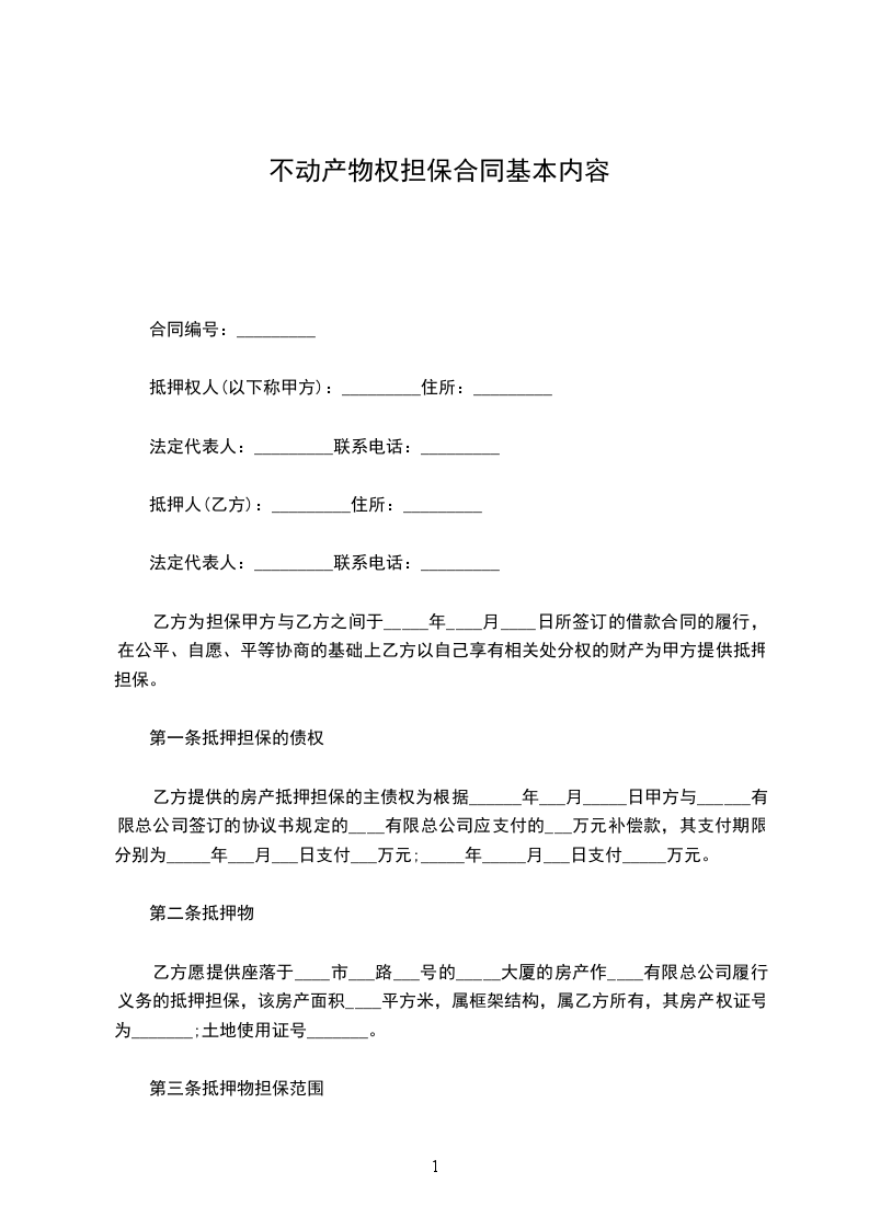 抵押人(乙方):_________住所:_________
