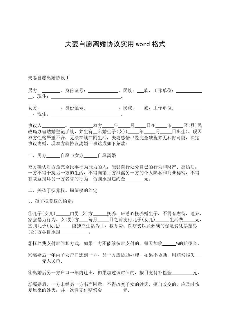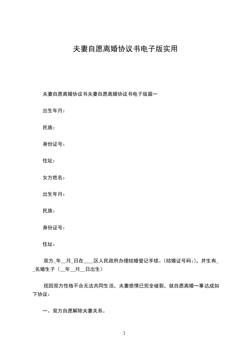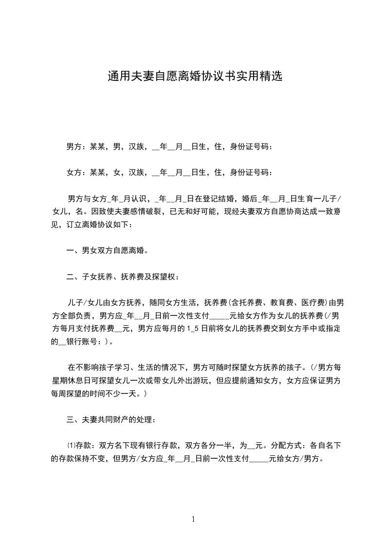 男方与女方_年_月认识,_年__月_日在登记结婚,婚后_年__月_日生育一儿子/女儿,名。因致使夫妻感情破裂,已无和好可能,现经夫妻双方自愿协商达成一致意见,订立离婚协议如下: