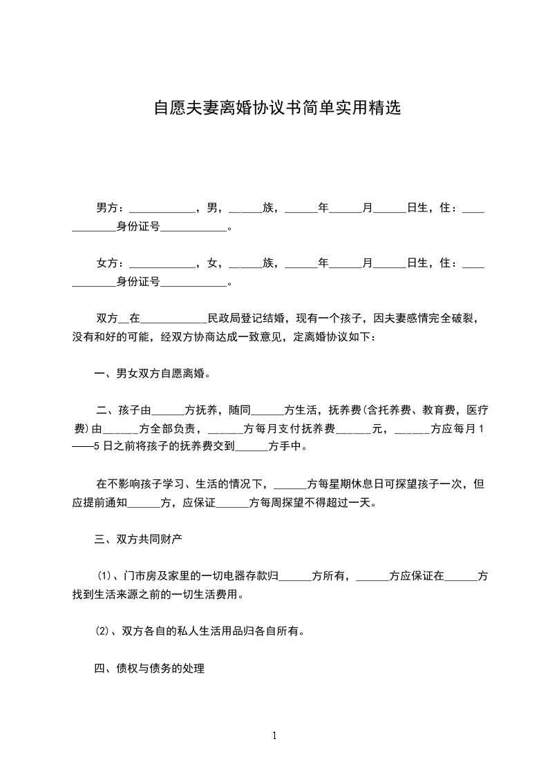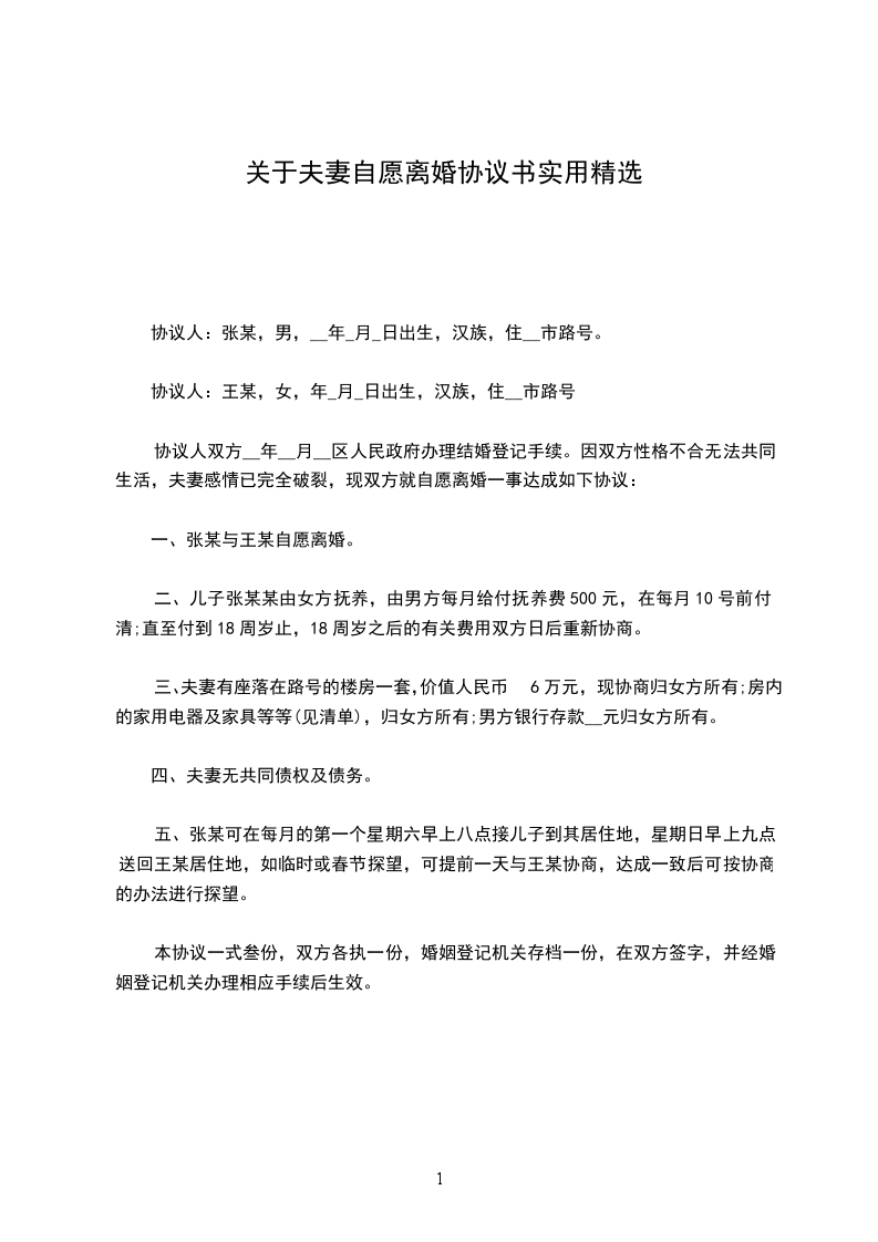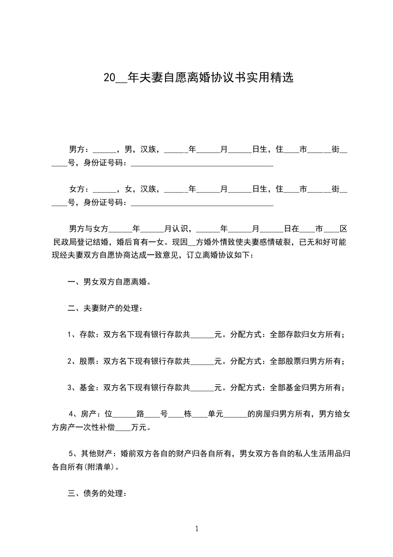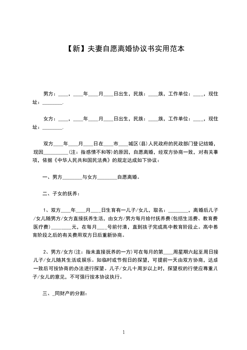 男方与女方_年_月认识,_年__月_日在登记结婚,婚后_年__月_日生育一儿子/女儿,名。因致使夫妻感情破裂,已无和好可能,现经夫妻双方自愿协商达成一致意见,订立离婚协议如下: