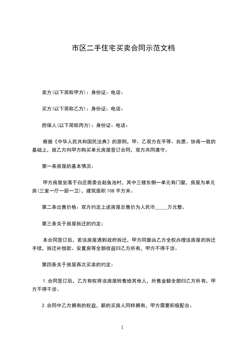 买方(以下简称乙方):身份证:电话: