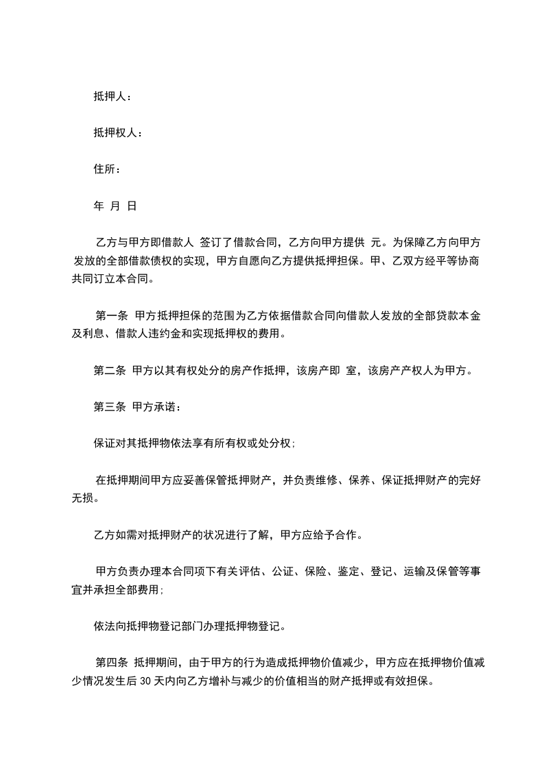 乙方因经营周转需要向银行提出借款申请但又提供不了银行要求的相应抵押物,请求甲方将其所有的位于______区______米的房屋(房产证号:_________)为其借款合同的抵押担保,双方经协商,就此达成如下协议: