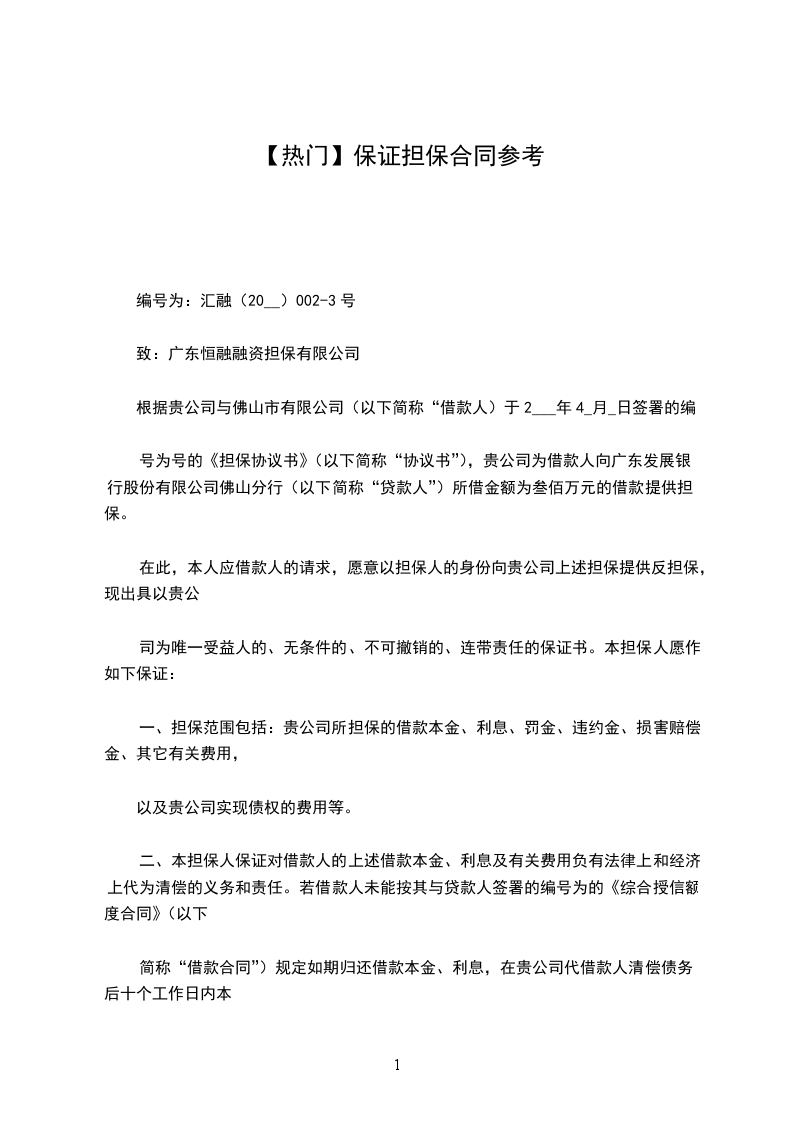 1、本担保人的财务状况足以保证本担保人有能力履行此项担保;