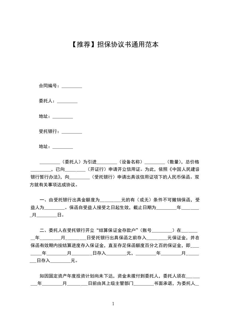 _________(委托人)为引进_________(设备名称)_________(数量),总价格_________,已向_________(开证行)申请开立信用证。为此,依照《中国人民建设银行暂行办法》,向_________(受托银行)申请出具该信用证项下的人民币保函。双方就有关事项达成协议。