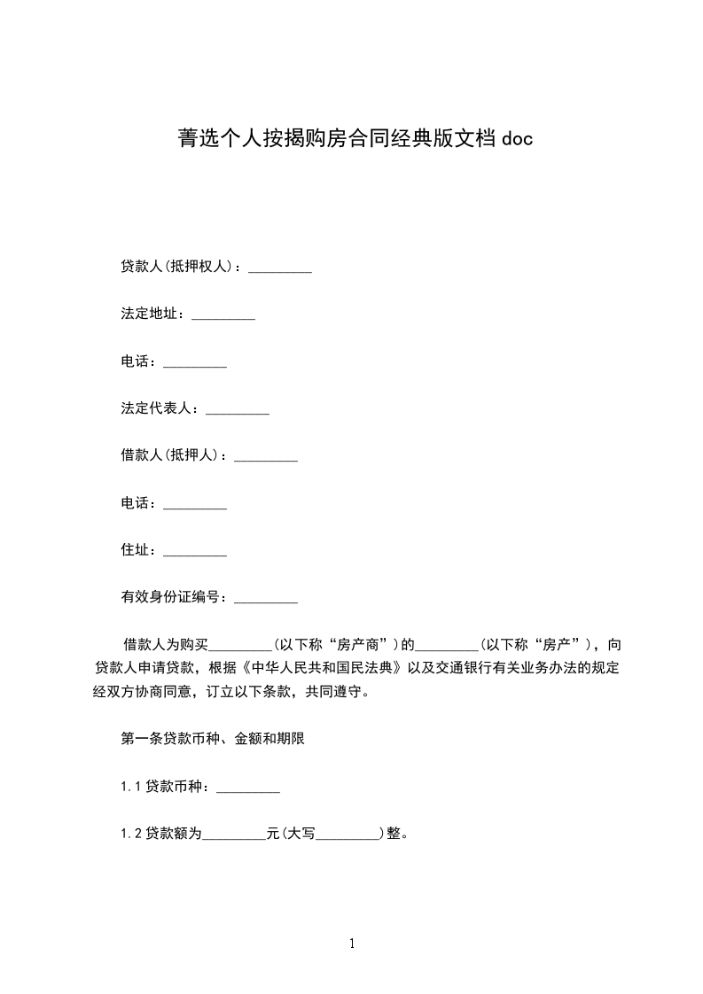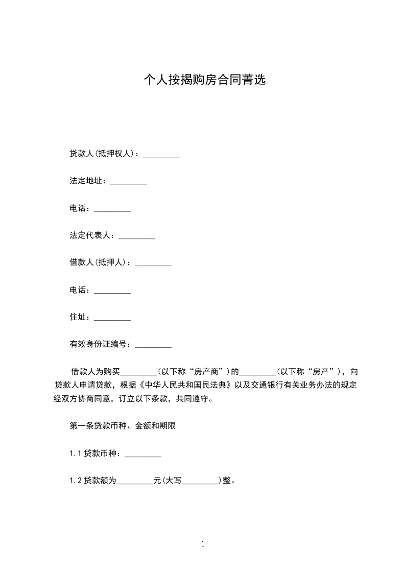 借款人为购买_________(以下称“房产商”)的_________(以下称“房产”),向贷款人申请贷款,根据《中华人民共和国民法典》以及交通银行有关业务办法的规定,经双方协商同意,订立以下条款,共同遵守。