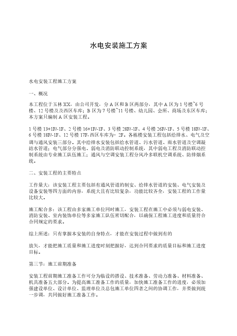 (1)室内给水系统预埋及安装;(从楼层一户一表后至户内用水地点包含卫生、洁具、地漏、水龙头等)