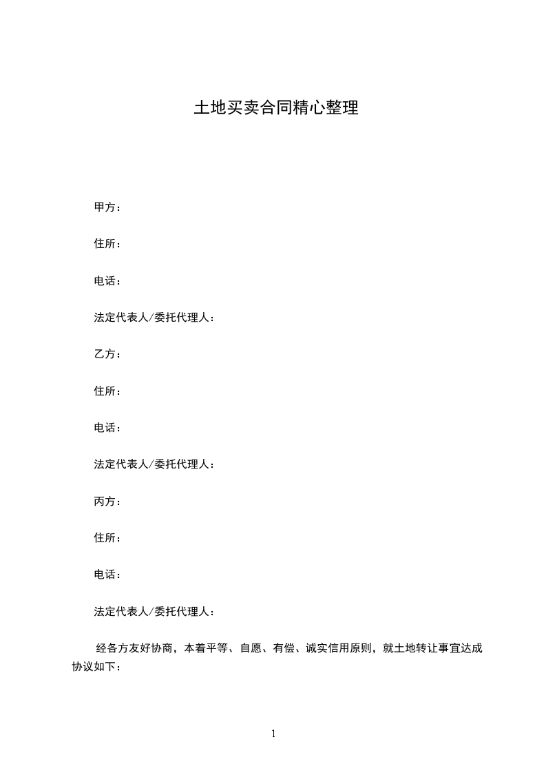 经各方友好协商,本着平等、自愿、有偿、诚实信用原则,就土地转让事宜达成协议如下: