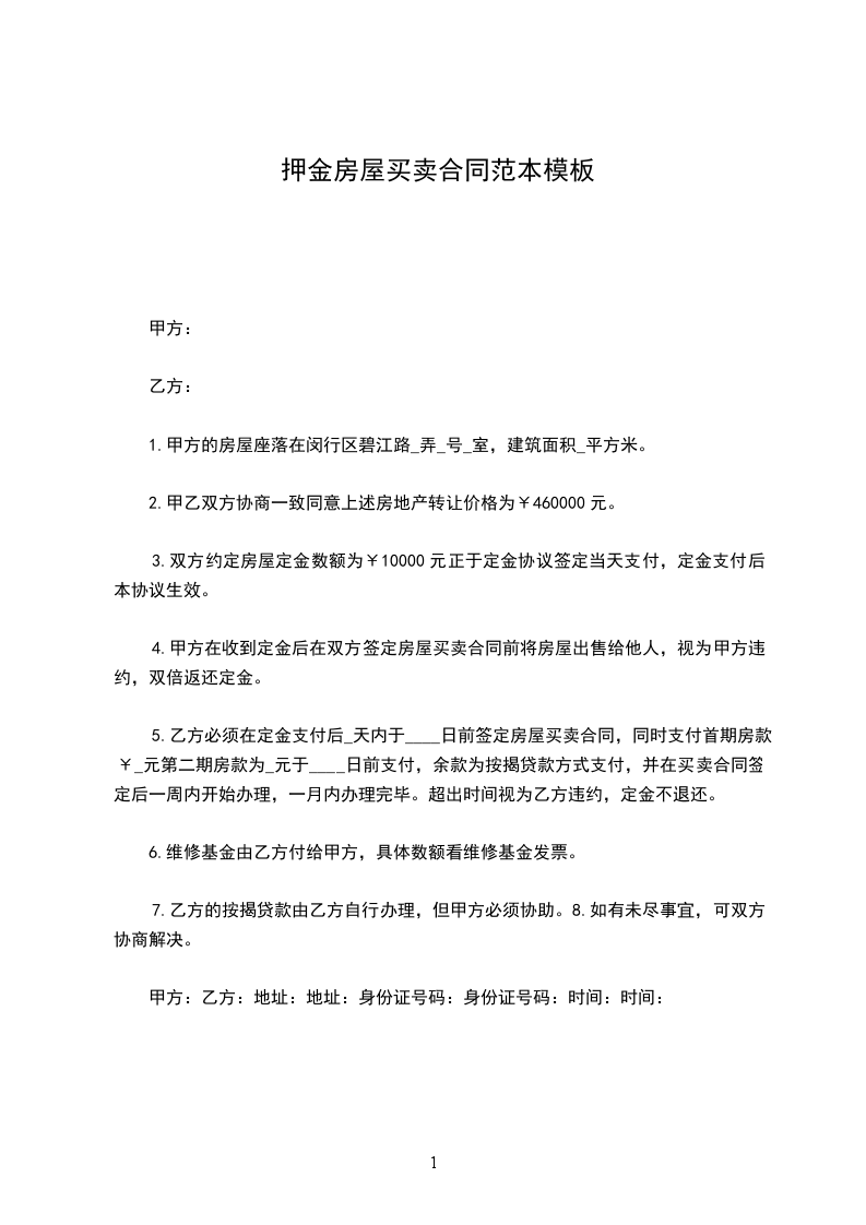1.甲方的房屋座落在闵行区碧江路_弄_号_室,建筑面积_平方米。