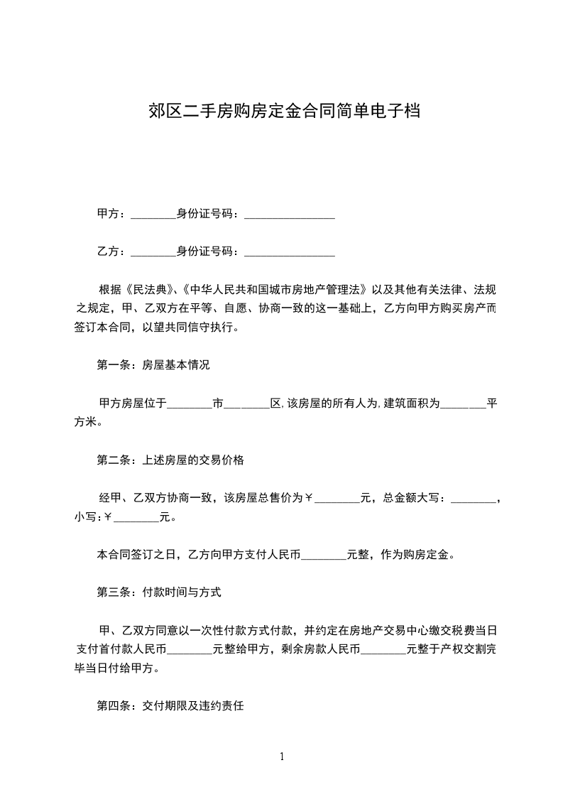 第三条1.甲、乙双方约定于______年____月____日之前签订正式的合同,如甲、乙任何一方未按时签订正式买卖合同,则视为违约。