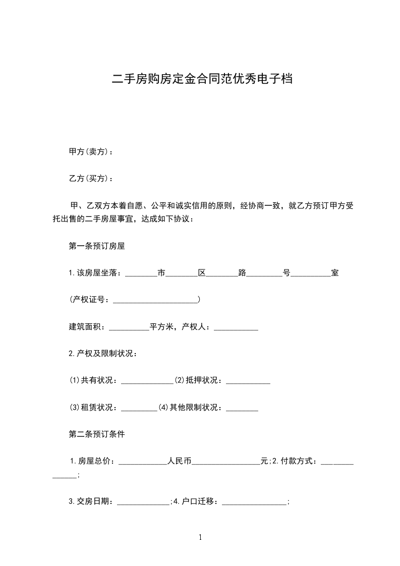 1、甲、乙双方协商一致,甲方所售房屋总金额为(人民币)____________大写______________________元整(含附属设施费用);乙方并于______年____月____日向甲方支付定金人民币______________万元整。