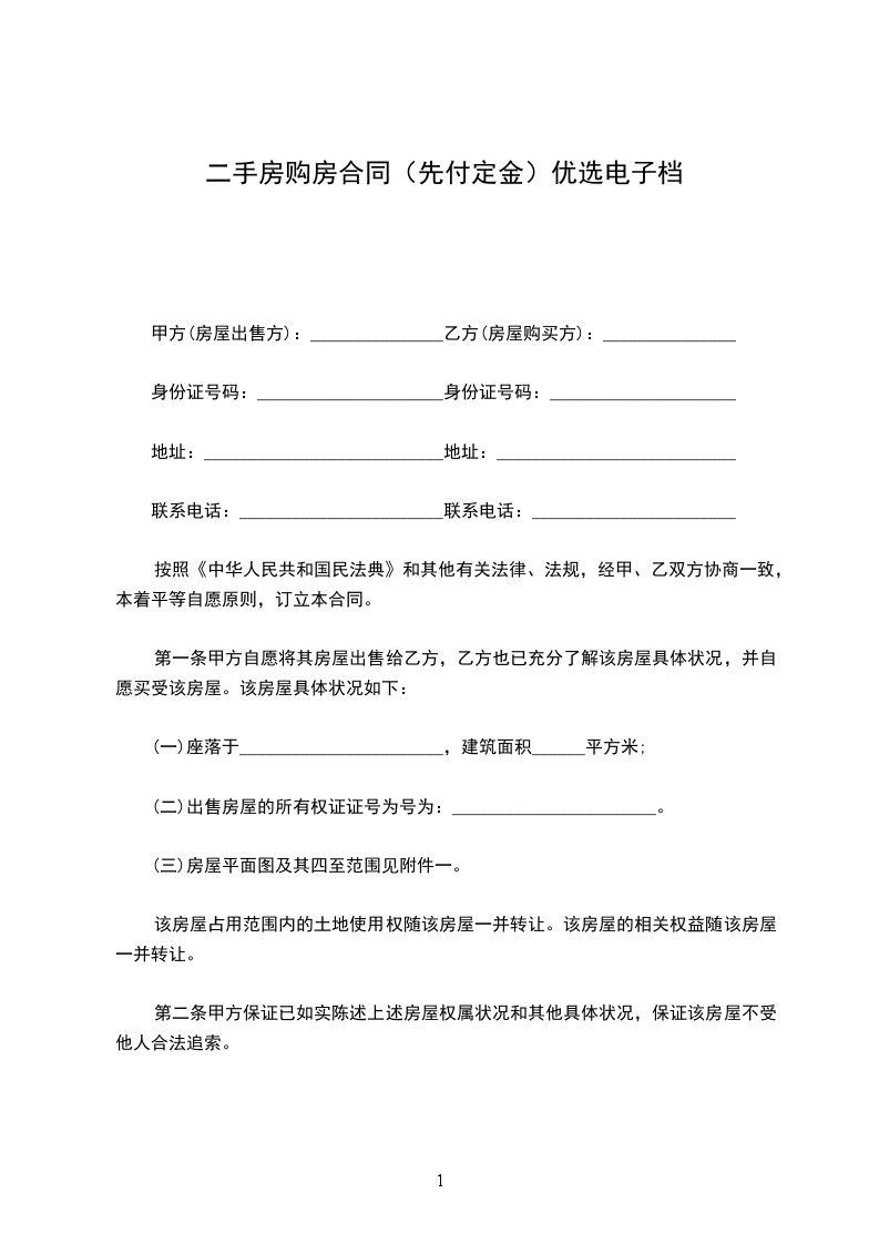 根据《中华人民共和国民法典》及其他有关法律、法规之规定,甲、乙双方在平等、自愿、协商一致的基础上,就乙方向甲方购买私有住房,达成如下协议: