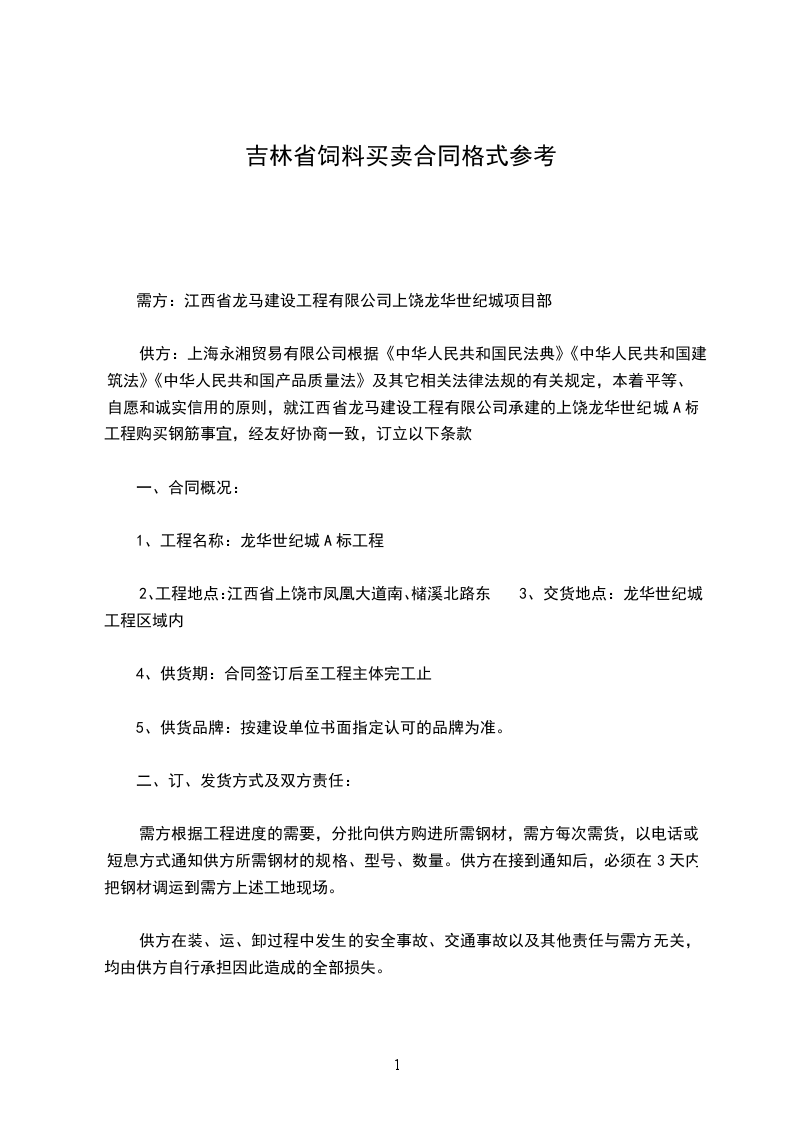 供方:上海永湘贸易有限公司根据《中华人民共和国民法典》《中华人民共和国建筑法》《中华人民共和国产品质量法》及其它相关法律法规的有关规定,本着平等、自愿和诚实信用的原则,就江西省龙马建设工程有限公司承建的上饶龙华世纪城A标工程购买钢筋事宜,经友好协商一致,订立以下条款