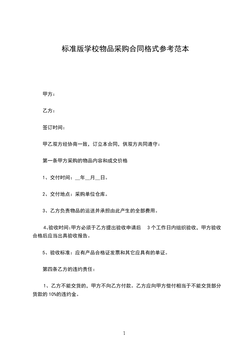 五、如甲方因特殊情况急需采购物品的,乙方不能以不是营业时间为由而拒绝。
