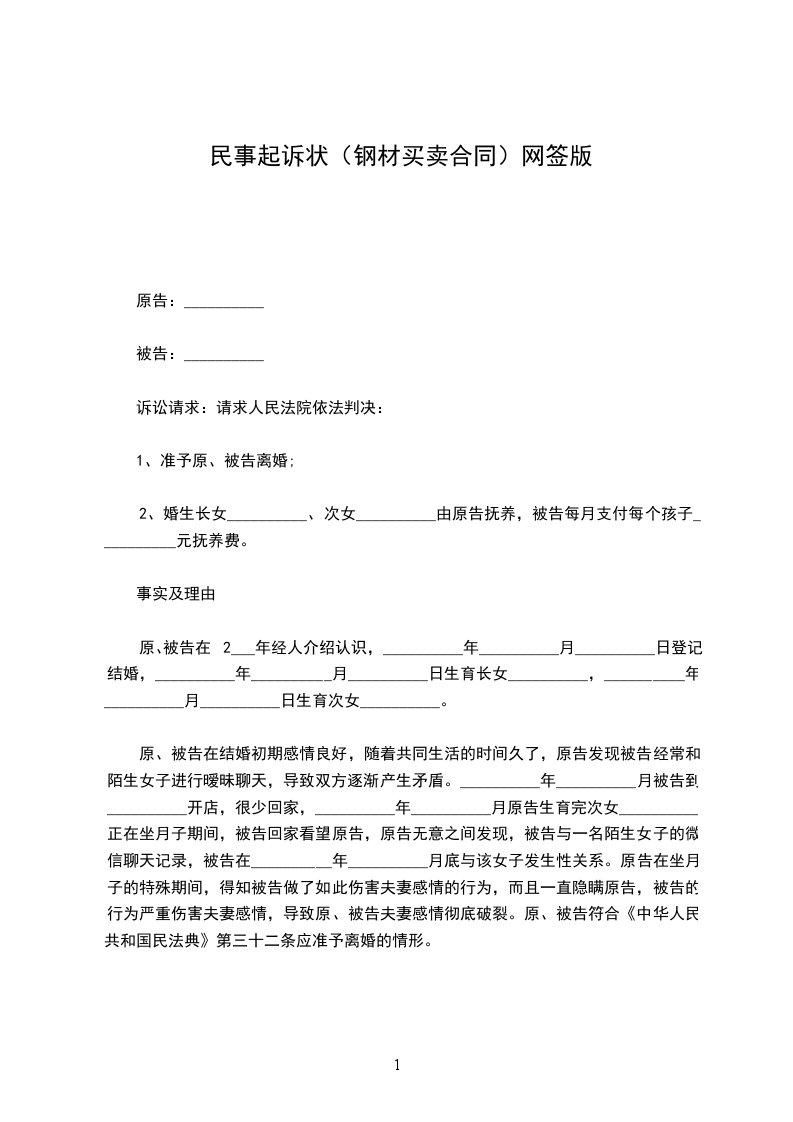 具状人(签字捺手印):____________(原告姓名)