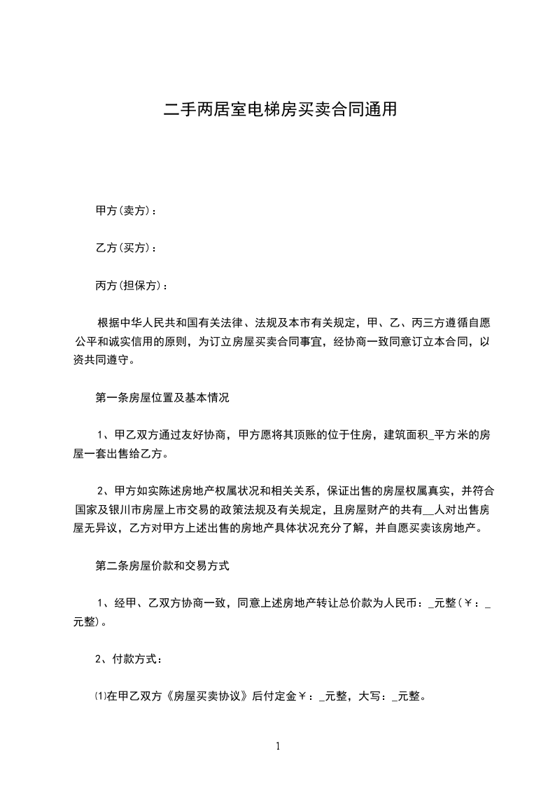 一、甲方愿意将____市花园____区经适房三室两厅两卫,面积____平方米房子买给乙方。