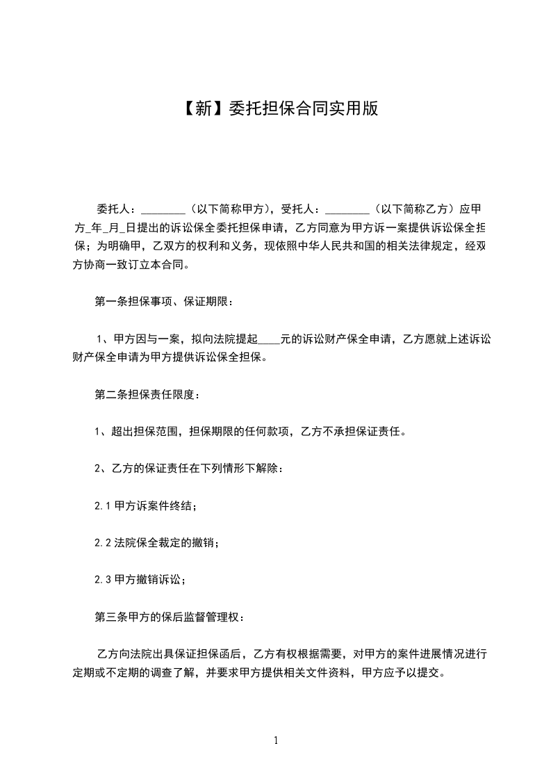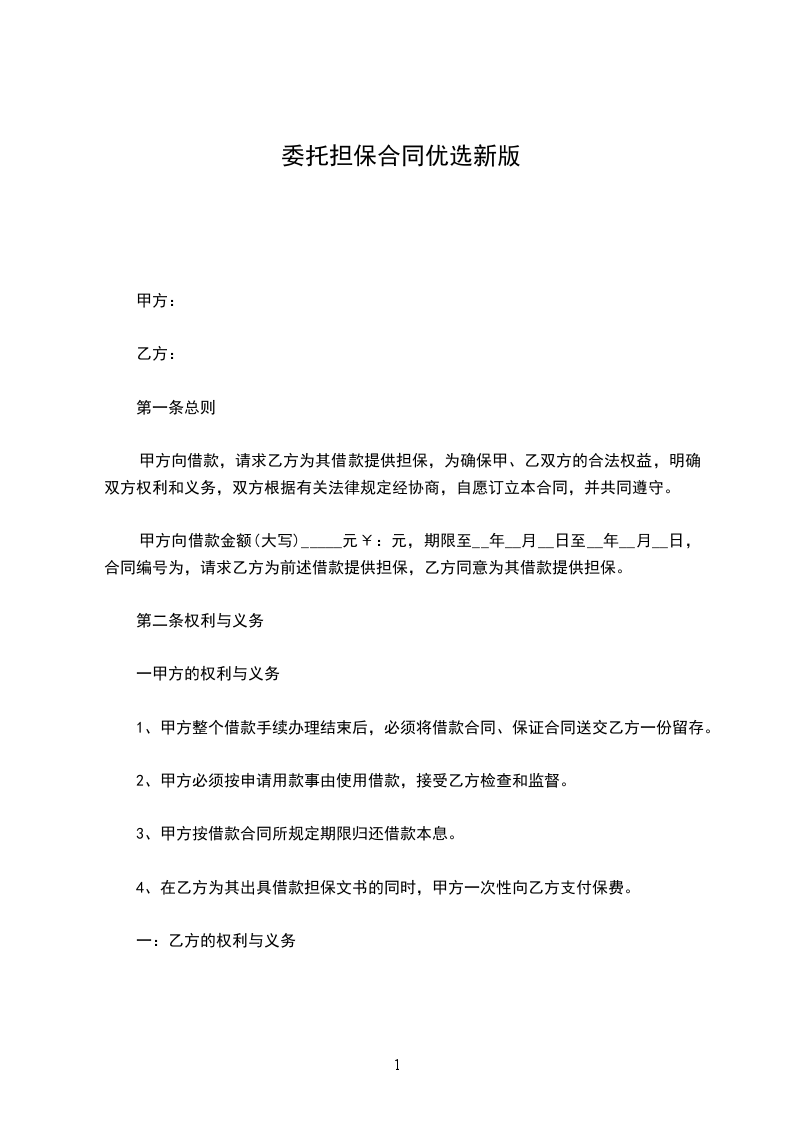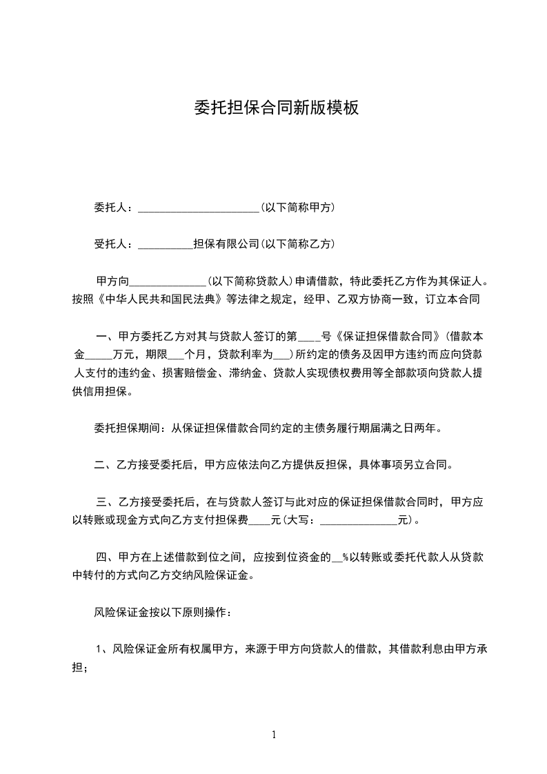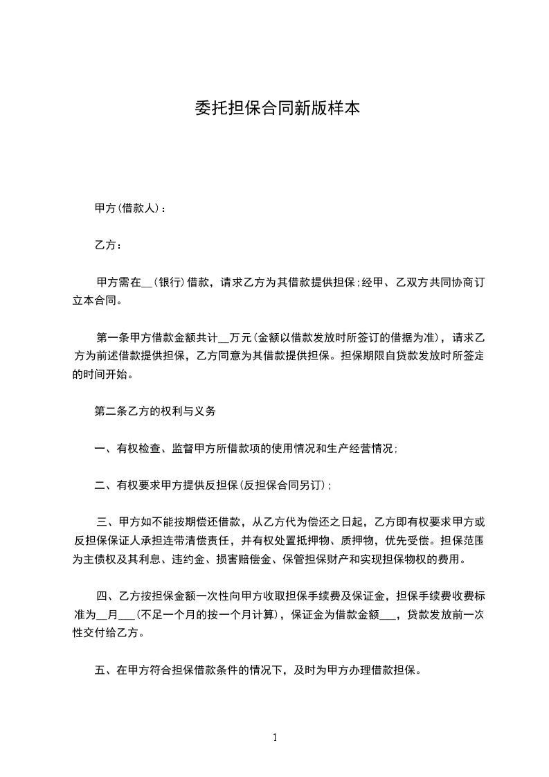 一、甲方委托乙方对其与贷款人签订的第____号《保证担保借款合同》(借款本金_____万元,期限___个月,贷款利率为___)所约定的债务及因甲方违约而应向贷款人支付的违约金、损害赔偿金、滞纳金、贷款人实现债权费用等全部款项向贷款人提供信用担保。