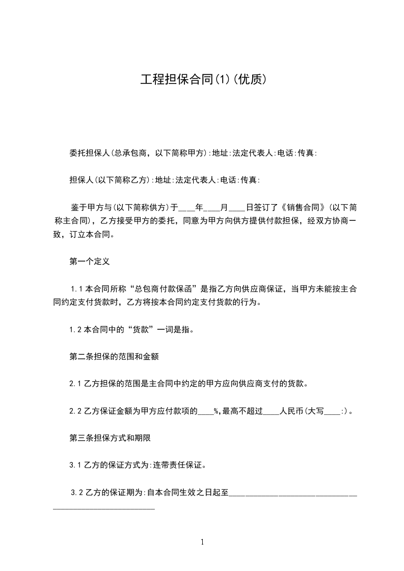 2、被担保人在工程开工前壹天将《国有使用证》、《施工许可证》、《施工合同》和履约金一并交担保公司。