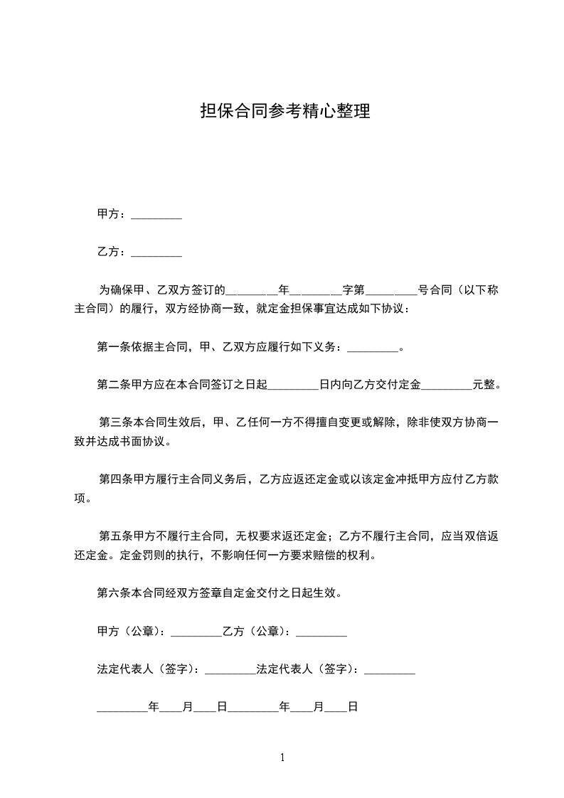 丙方违反本合同第二条约定,末按期代为清偿到期债务,乙方可视情况担保总额的_______%向丙方收取违约金。