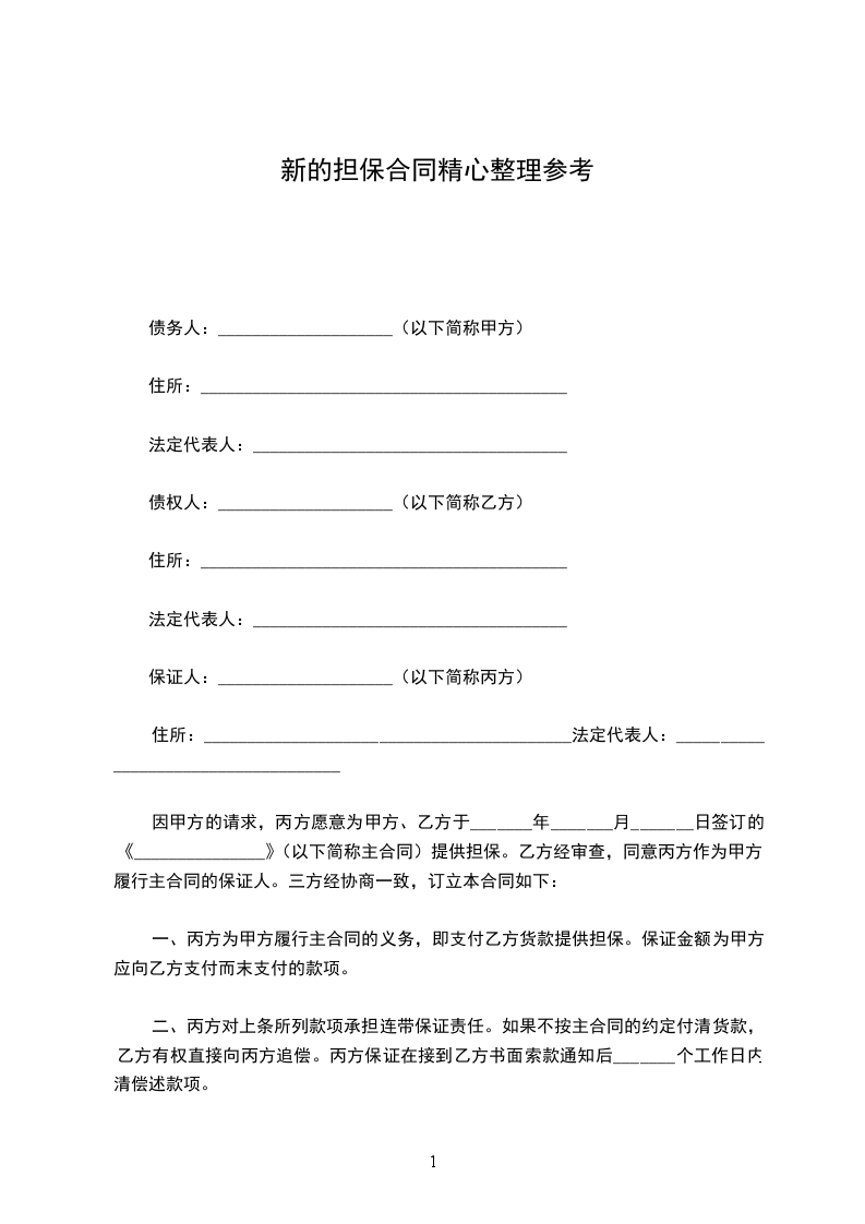 因甲方的请求,丙方愿意为甲方、乙方于_______年_______月_______日签订的《_______________》(以下简称主合同)提供担保。乙方经审查,同意丙方作为甲方履行主合同的保证人。三方经协商一致,订立本合同如下: