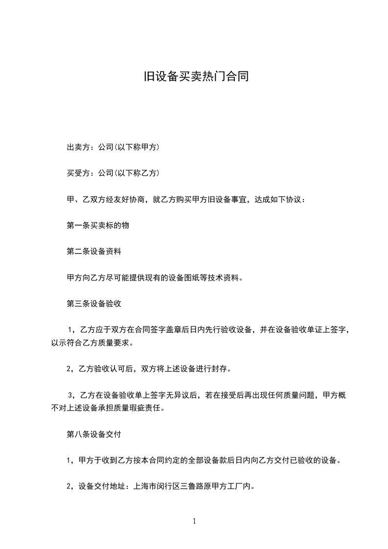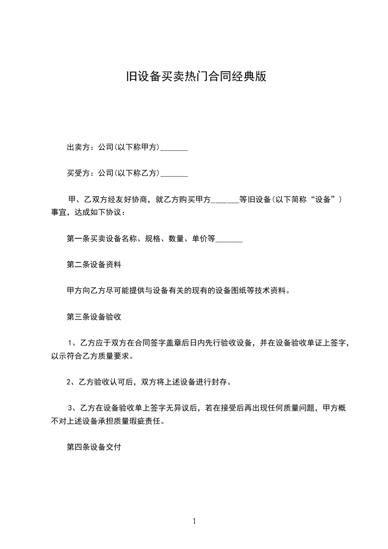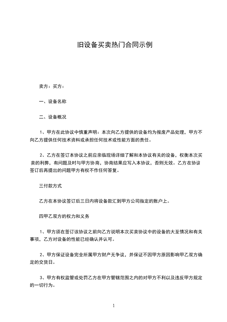 甲、乙双方经友好协商,就乙方购买甲方_______等旧设备(以下简称“设备”)事宜,达成如下协议: