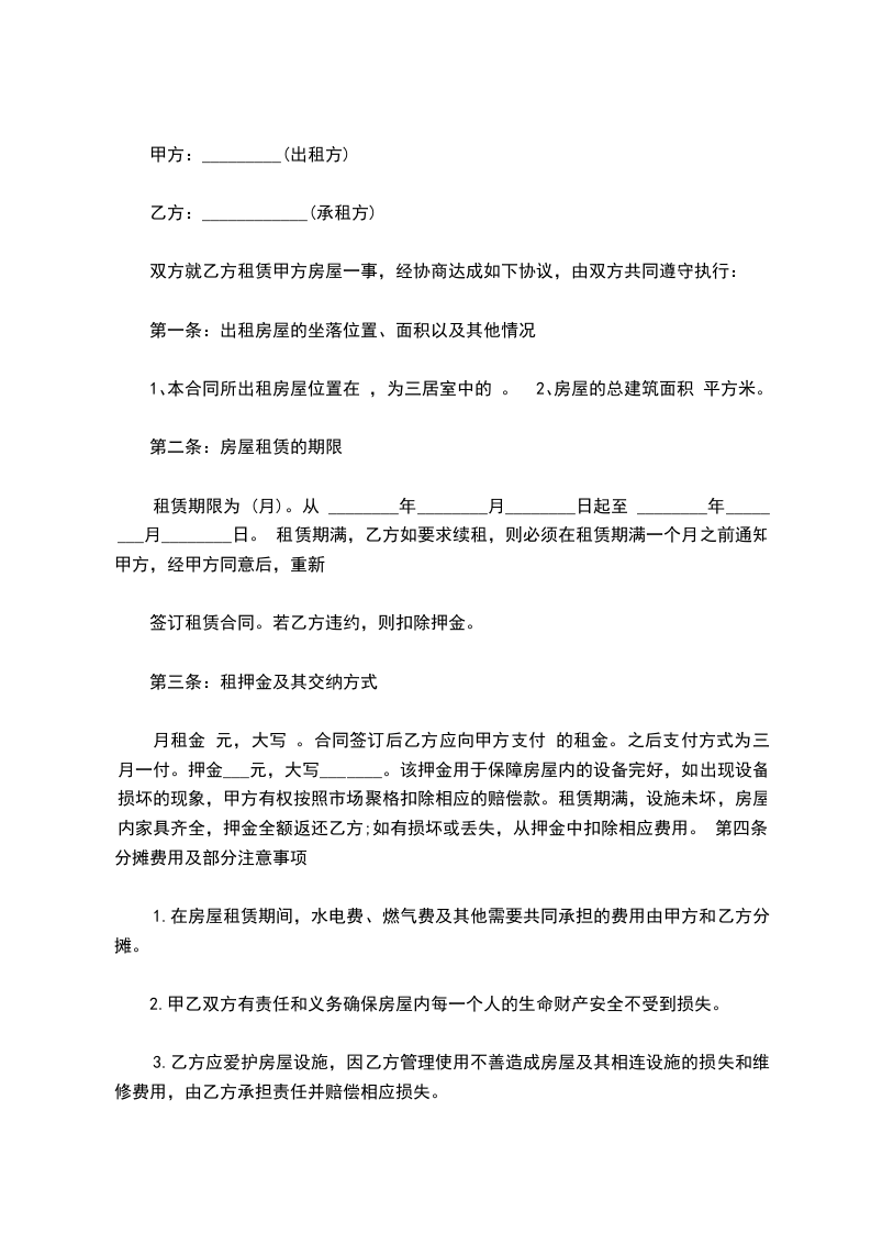 3、甲、乙双方在履行本合同中若发生争议,应协商解决。协商不成的,任何一方均可向房屋所在地人民法院提起诉讼。