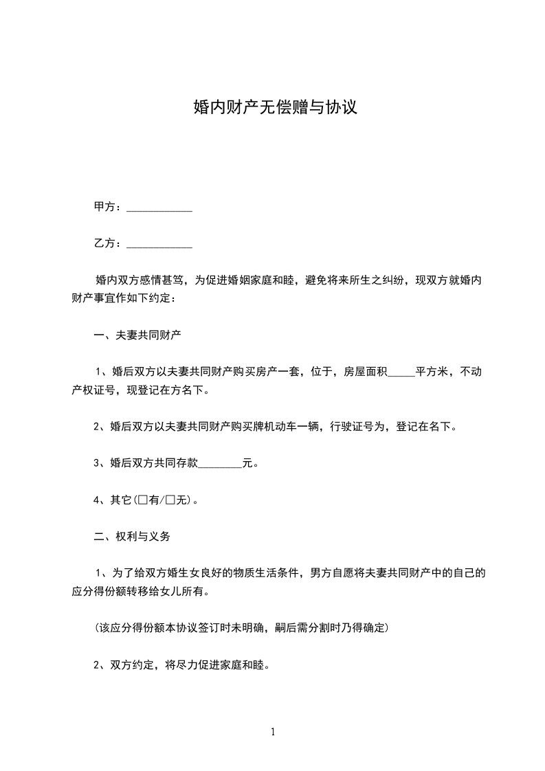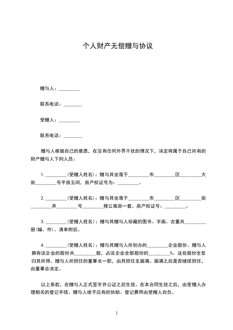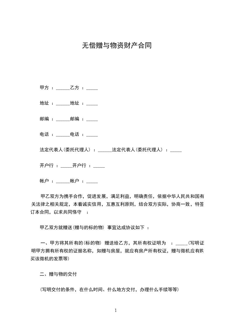赠与人 (以下简称甲方)、受赠人 (以下简称乙方),双方议定下列赠与事宜,其条件如下:
