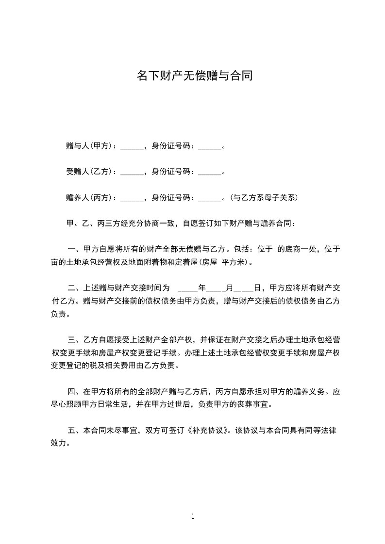 赠与人(甲方):