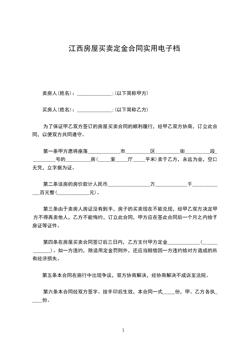 (1)乙方于_年__月_日向甲方支付该房屋的定金。计人民币__元(大写)¥(小写),甲方应同时将收款凭证交给乙方;