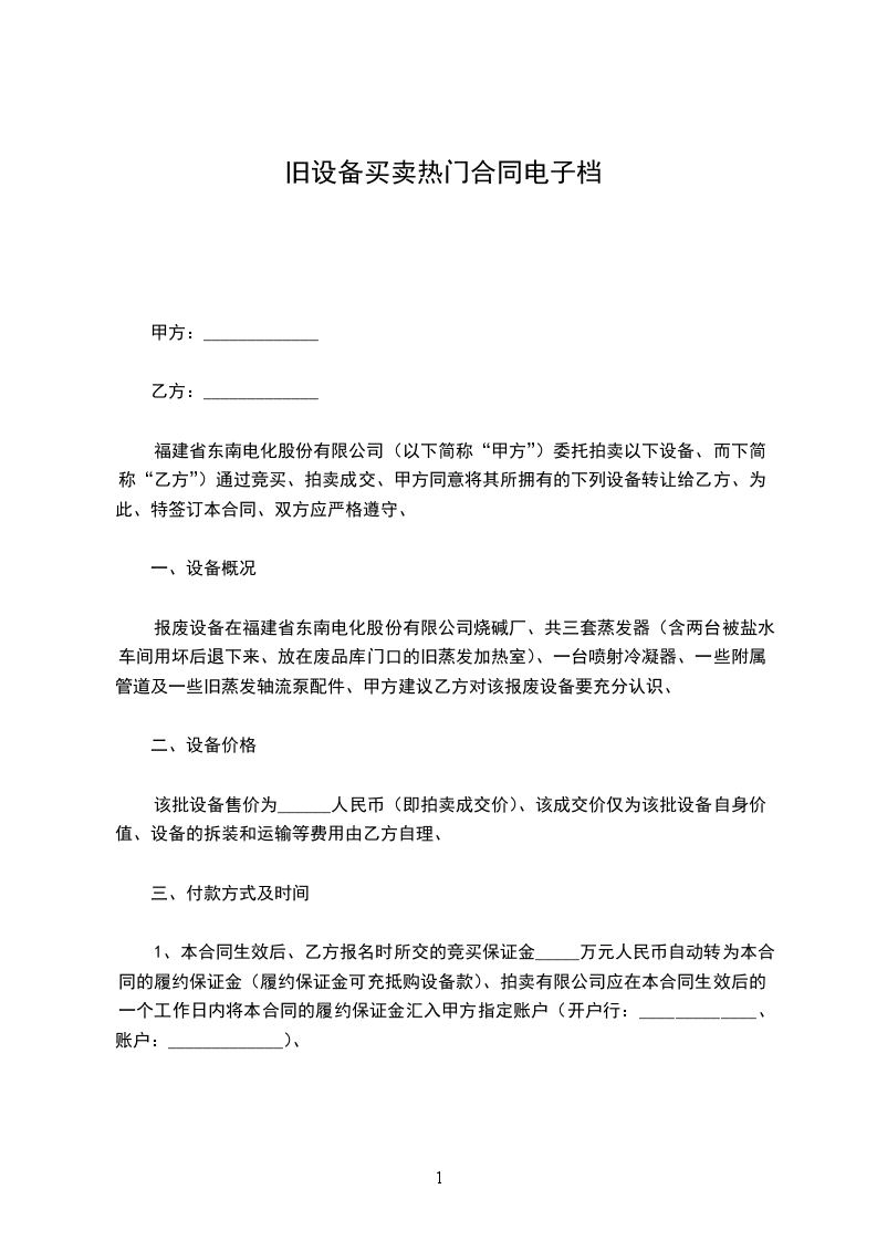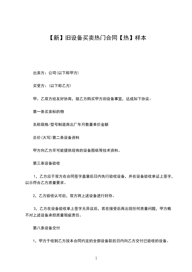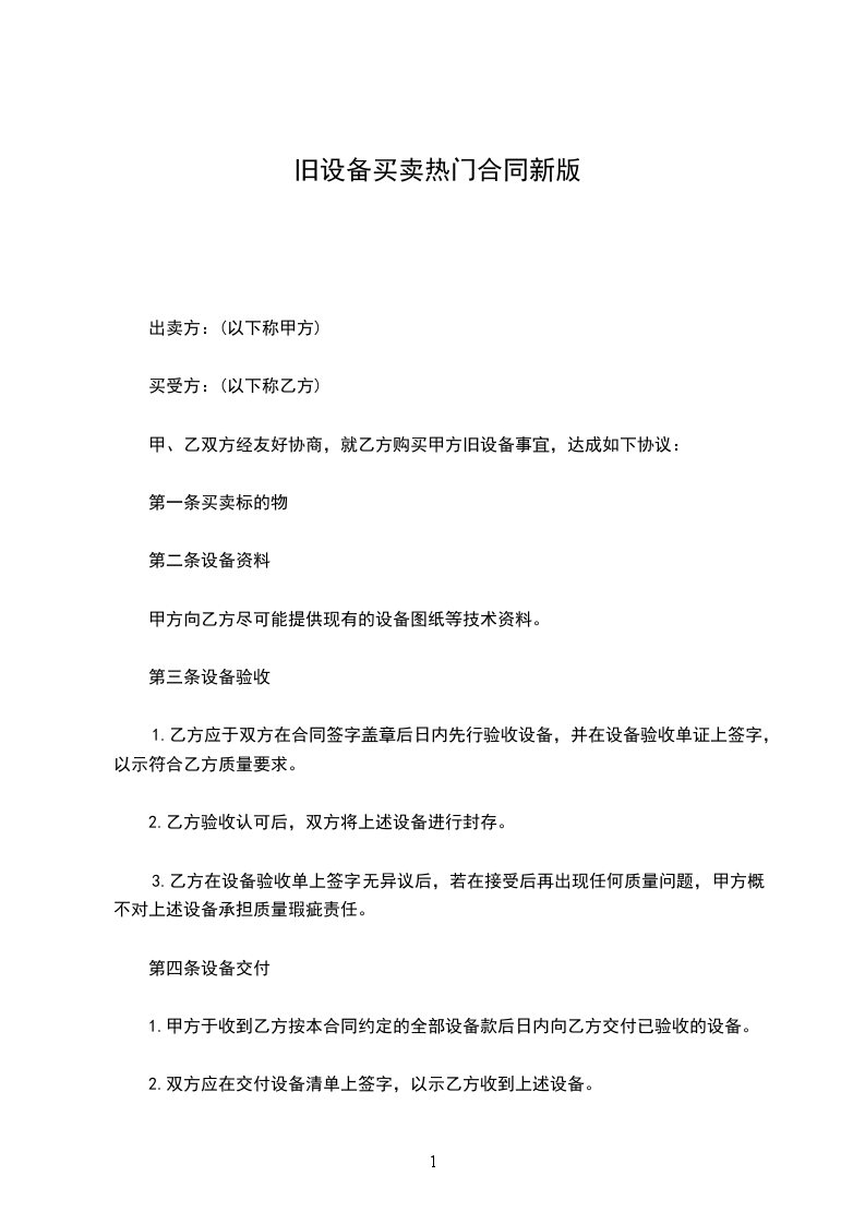 甲、乙双方经友好协商,就乙方购买甲方旧设备事宜,达成如下协议:
