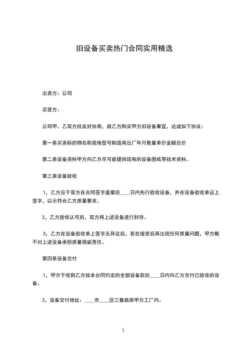 1.甲方于收到乙方按本合同约定的全部设备款后日内向乙方交付已验收的设备。
