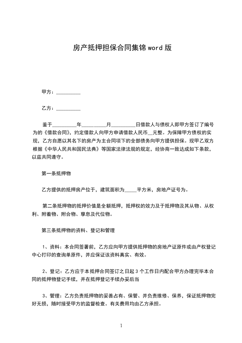 抵押担保协议书(集锦)优选文档