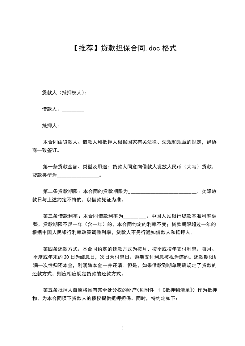 第五条抵押人自愿将具有完全处分权的财产(见附件1《抵押物清单》)作为抵押物,为本合同项下贷款人的债权提供抵押担保。同时,特约定如下:
