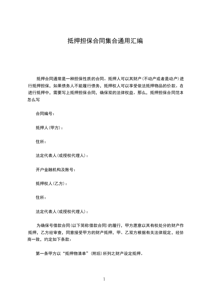 乙方为担保甲方与乙方之间于_____年____月____日所签订的借款合同的履行,在公平、自愿、平等协商的基础上乙方以自己享有相关处分权的财产为甲方提供抵押担保。