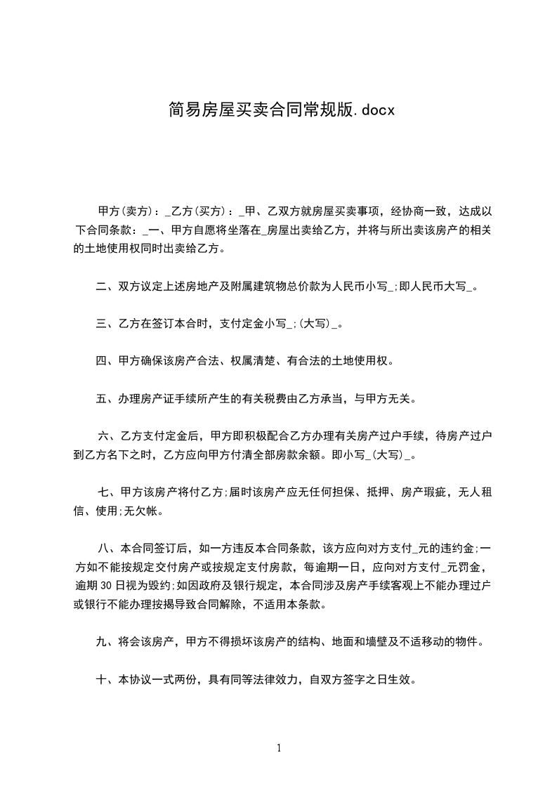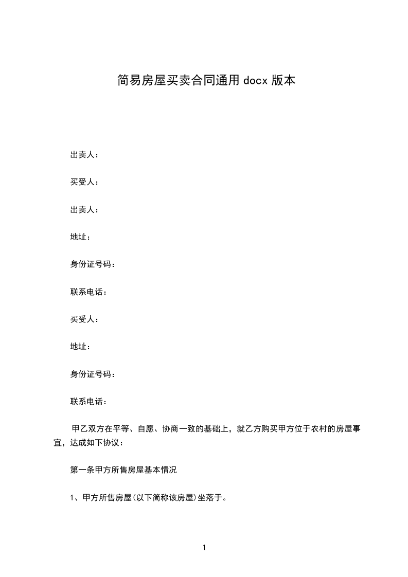 1、甲方自愿将房屋出售给乙方