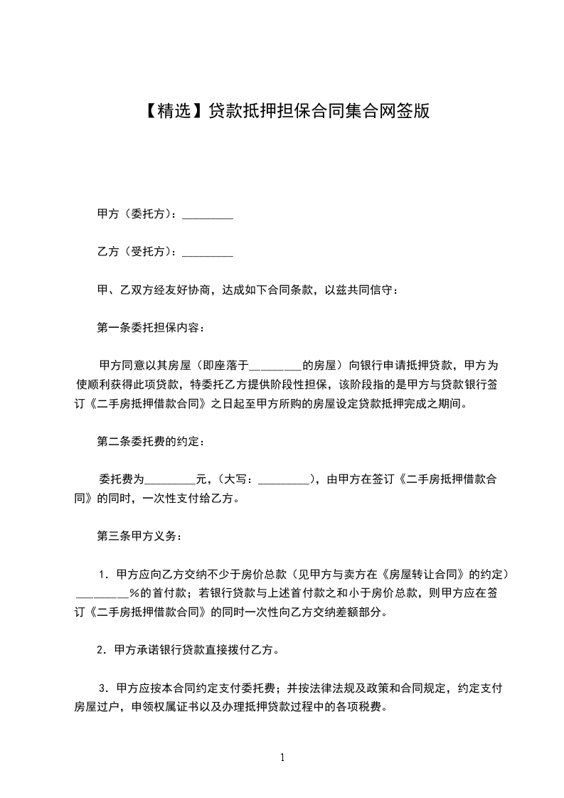 【精选】贷款抵押担保合同集合网签版