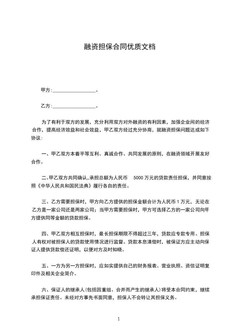 为了有利于双方的发展,充分利用双方对外融资的有利因素,加强企业间的经济合作,提高经济效益和社会效益,甲乙双方经过充分协商,就融资担保问题达成如下协议: