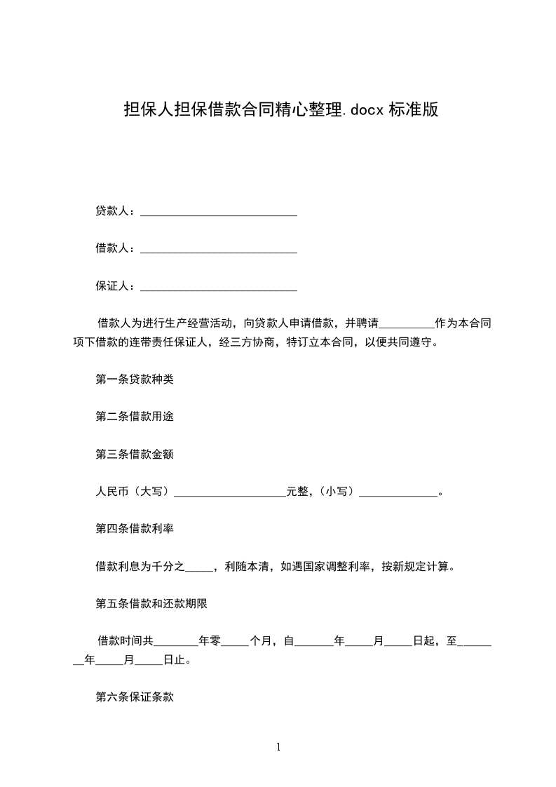 1、我保证被保证方不论在任何情况下都按被保证方与贵局所签订之贷款合同的规定,归还人民币贷款的本金和利息。