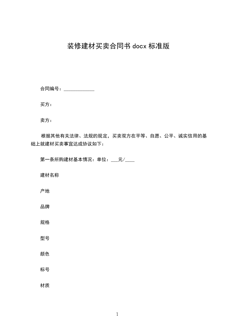第一条所购建材基本情况:单位:___元/____