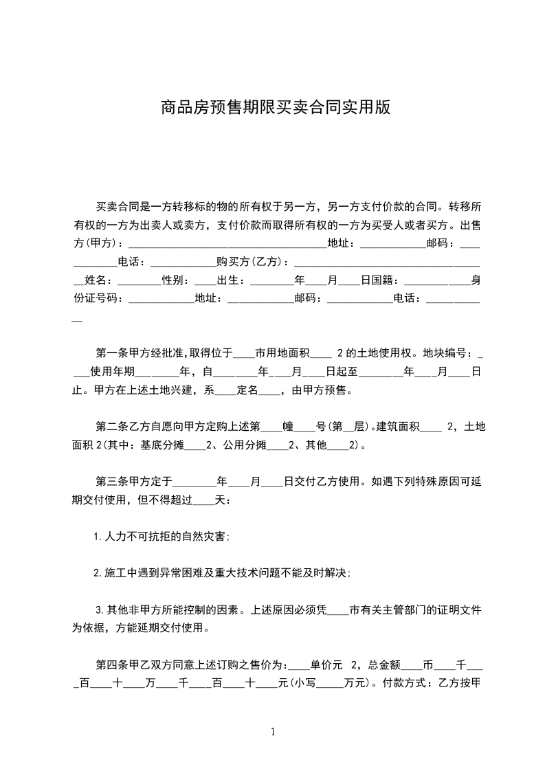 第一条甲方经批准,取得位于____市用地面积____2的土地使用权。地块编号:____使用年期________年,自________年____月____日起至________年____月____日止。甲方在上述土地兴建,系____定名____,由甲方预售。