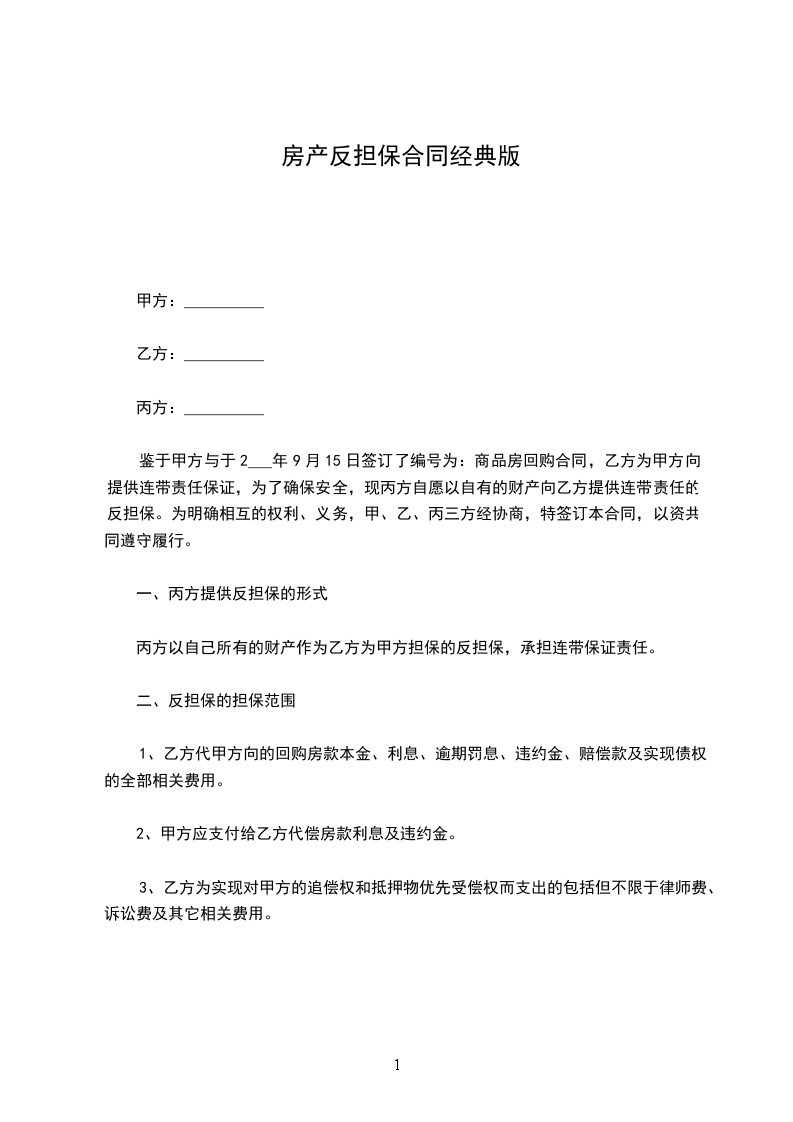 丙方:(反担保人)________________身份证号:________________电话:________________