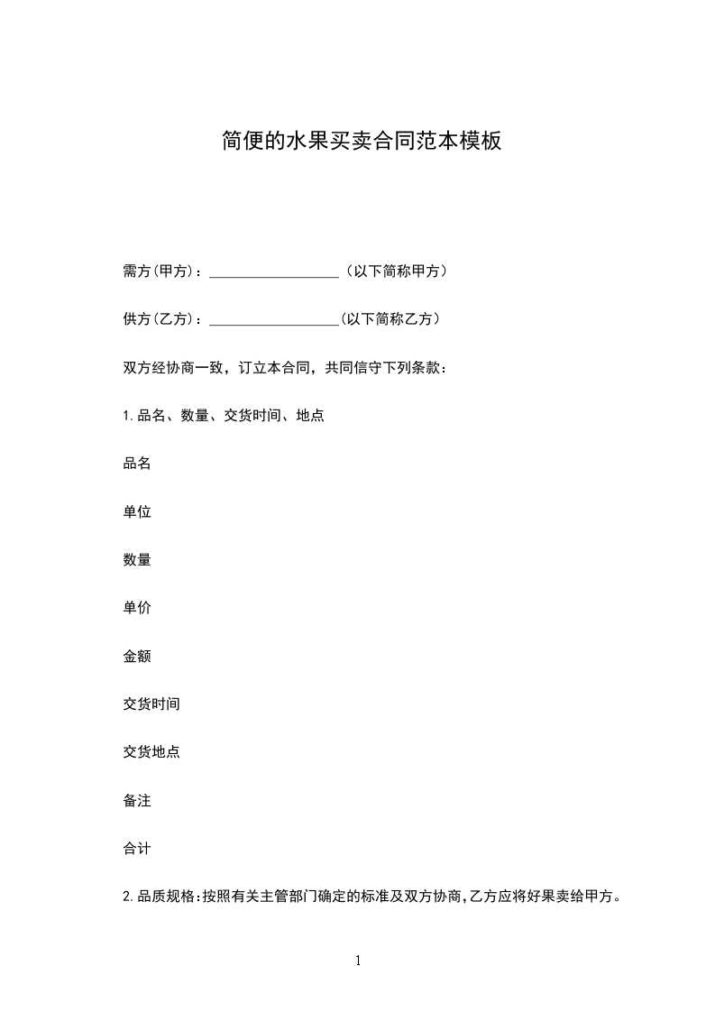 2、品质规格:按照有关主管部门确定的标准及双方协商,乙方应将好果卖给甲方。