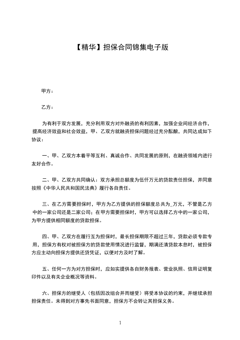 为有利于双方发展,充分利用双方对外融资的有利因素,加强企业间经济合作,提高经济效益和社会效益,甲、乙双方就融资担保问题经过充分酝酿,共同达成如下协议: