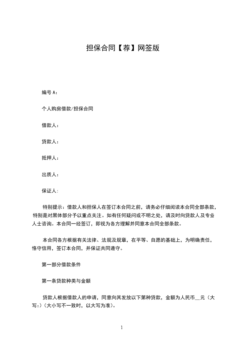 特别提示:借款人和担保人在签订本合同之前,请务必仔细阅读本合同全部条款,特别是对黑体部分予以重点关注。如有任何疑问或不明之处,请及时向贷款人及专业人士咨询。本合同一经签订,即视为各方理解并同意本合同全部条款。