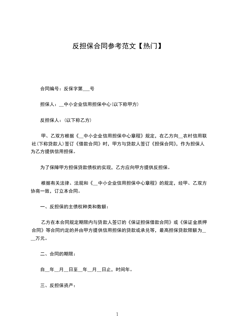 合同编号:反保字第___号