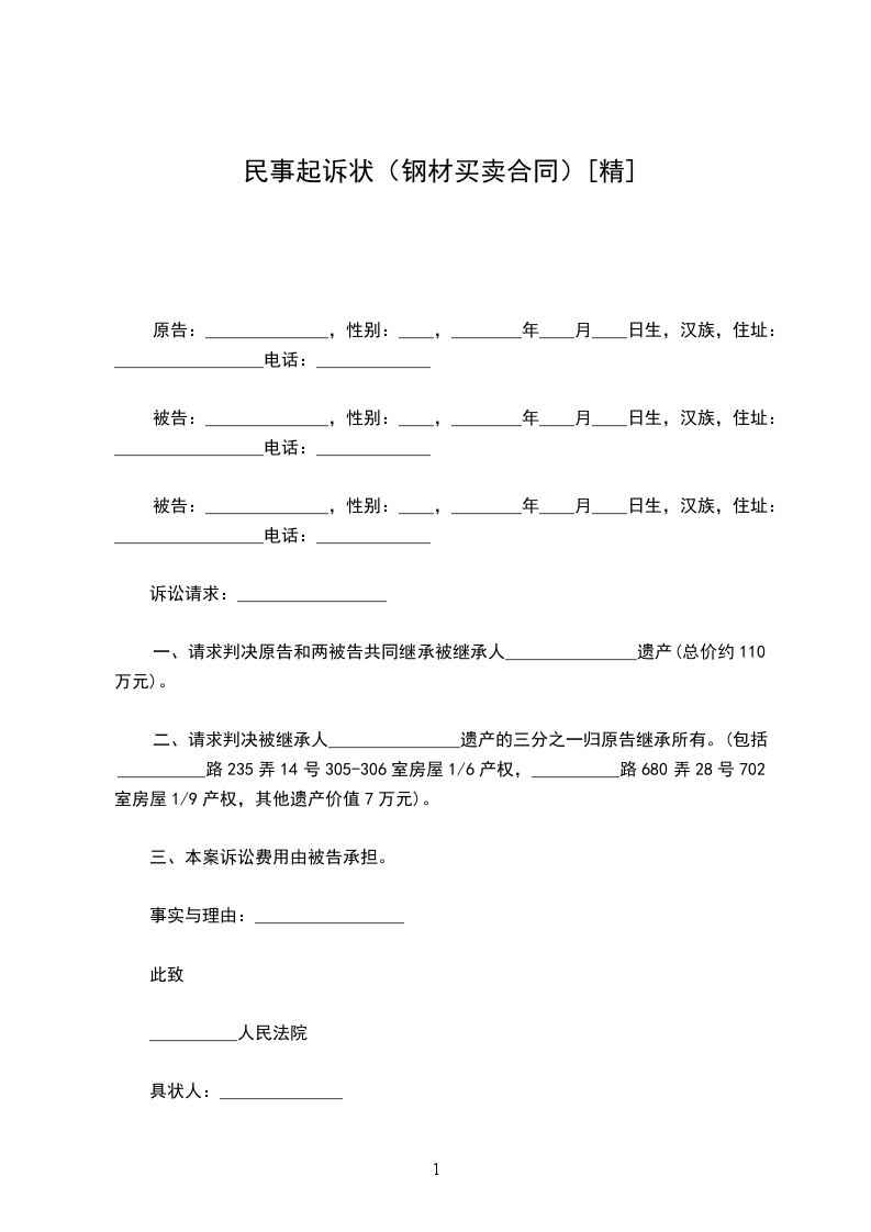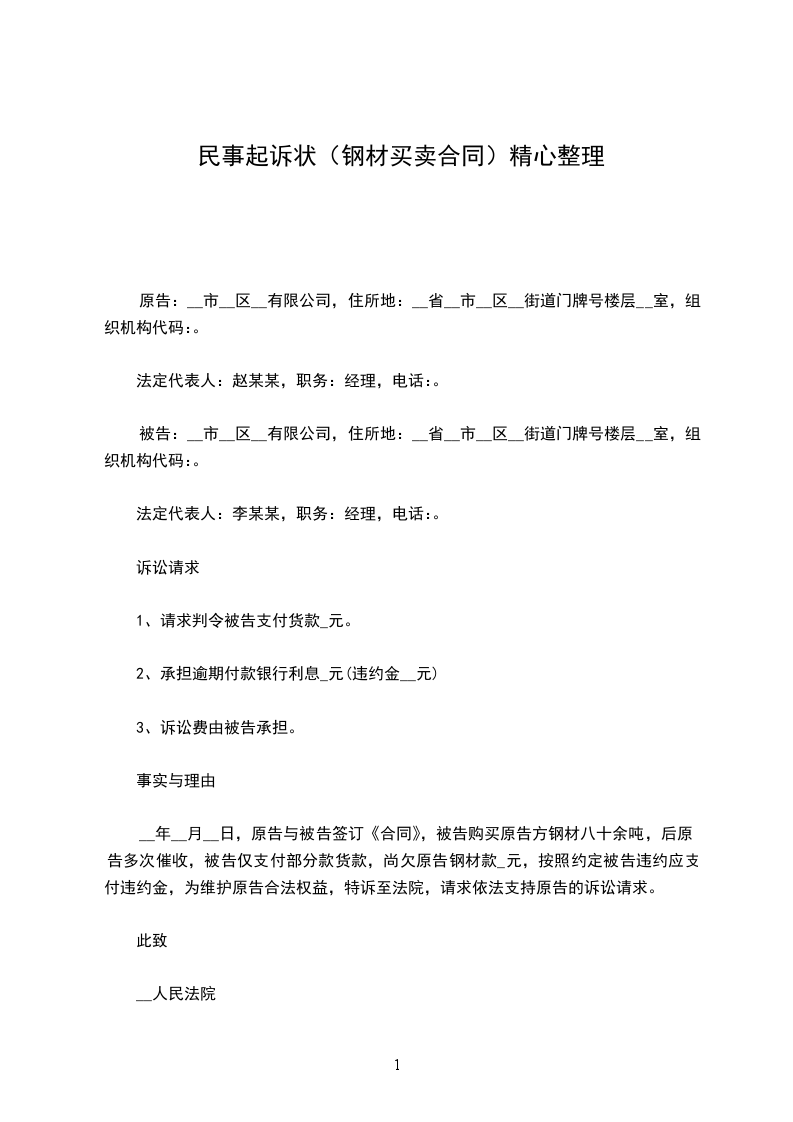 __年__月__日,原告与被告签订《合同》,被告购买原告方钢材八十余吨,后原告多次催收,被告仅支付部分款货款,尚欠原告钢材款_元,按照约定被告违约应支付违约金,为维护原告合法权益,特诉至法院,请求依法支持原告的诉讼请求。
