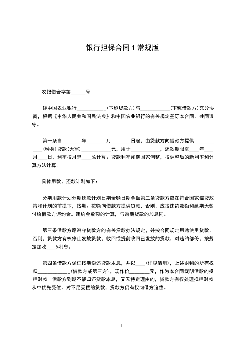 农银借合字第______号