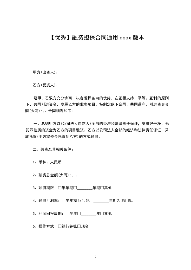 4、融资月利率:□半年期为1.5%□________年期为2%□%。