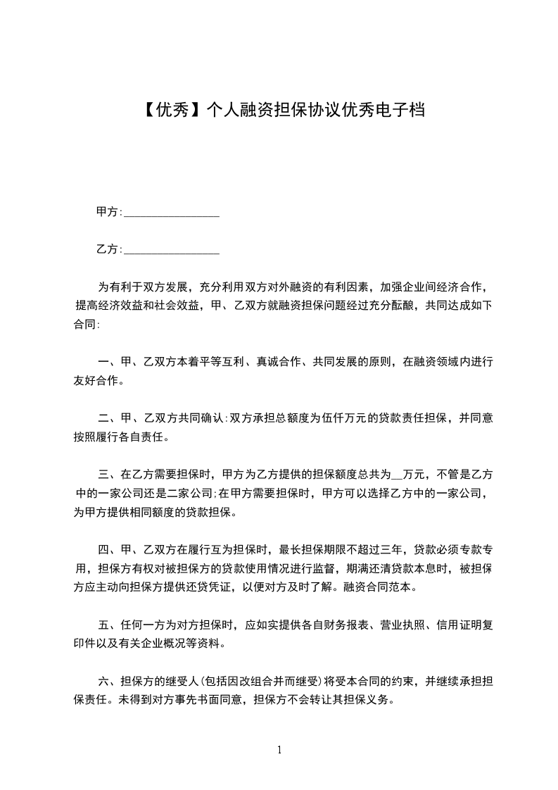 一、总则甲方以(公司法人自然人)全部的经济和法律责任保证,安排好干净、无犯罪性质的资金为乙方的项目融资。乙方以公司法人全部的经济和法律责任保证,采取托管(甲方将资金托管到乙方)的方式融资。