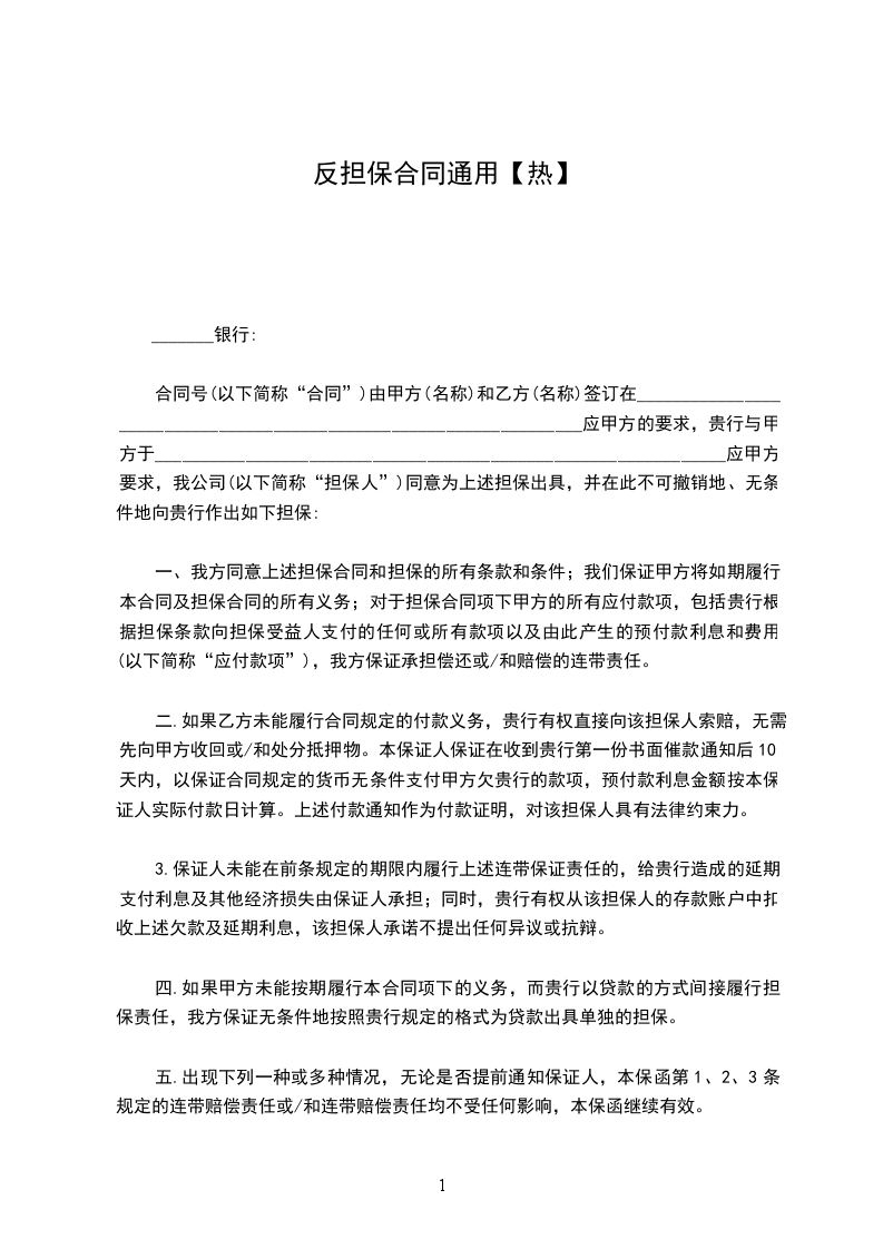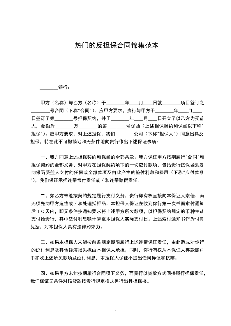 在甲方履行保证责任后____日内,乙方应当向甲方为之所付出的全部款项。